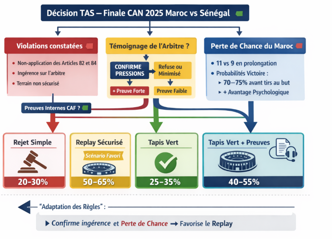C'est intéressant si ça ouvre une brèche dans le front "corporate" caf, que j'aurais bien imaginé assez monolithique et coordonné, de la dénégation ou du "non, vous avez mal interprété, vous extrapolez". Si cette affaire tourne en "dilemme du prisonnier du TAS" parce qu'on doit établir impérativement les responsabilités de ce scandale et que les protagonistes ne savent plus sur quel pied danser, là ça devient amusant. annulation du titre ou pas, ça sera fun de voir chacun tenter de sauver sa peau et le tas taper dans la fourmilière en obligeant la caf à fournir les communications et en convoquant toute la clique à témoigner à la lumière des preuves qui pourraient être produites. Dans ce que tu décris, le Maroc et Ndala deviennent des alliés objectifs. "Témoigne que ton boss t'a donné des directives précises et contraignantes violant le règlement et créant une rupture d'équité, nous on va tout faire pour t'aider à le prouver, toi tu sauves ta carrière, et nous on obtient justice. Si ça marche, c'est win win, et tout sera pardonné, Allah issem7 Allah issem7 et mer7ba pour la can 2028" Je nuancerais mon regain d'enthousiasme sur deux points : 1-je n'imagine pas ce type assez idiot pour ne pas avoir pris les précautions oratoires qui le disculpent, et surtout, pour avoir laissé des traces (des écrits ou des enregistrements). Dès lors je ne sais pas quel type de preuve peut venir étayer les témoignages (contradictoires et parole-contre-parole dans le scénario que tu ébauches) 2- es-tu bien sûr de l'automaticité de ça : "un arbitre a admis avoir sciemment ignoré la loi et ça invalide le résultat." ?