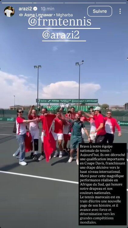 @warbix @Mimoun95 Pour le moment Arazi est en train de réussir un énorme coup, aujourd'hui l'équipe nationale marocaine de tennis masculin s'est déplacé à Pretoria pour affronter l'Afrique Du Sud dans le cadre de matchs qualificatif au play off du Groupe I de la Davis Cup. Yassine Dlimi n°2 Marocain a battu le numéro 1 Sudaf en trois sets. Taha Baadi numéro 1 marocain vient de battre à l'instant le numéro 2 Sudaf en 3 sets également, j'ai regardé son match et il a lâcher ses tripes sur le terrain. On est à une victoire des play off Groupe 1 de la Davis Cup ALLEZ LES GUERRIERS- [2025-2026] La saison des Lions