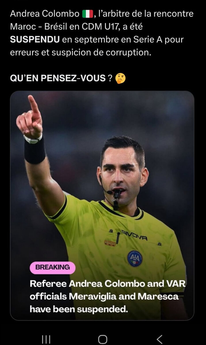 La tête de Baha mdr. Après sur les réseaux sociaux,ce qui m’énerve c’est que tt le monde parle de main brésilienne et d’injustice.alors qu’il n’y a pas main. ils font comme ‘hadouk’ Ça me bute. Se poser en victime. Pour moi le responsable,malgré un arbitrage de m*rde,c’est Baha point. Faut pas se cacher comme ça derrière des excuses.