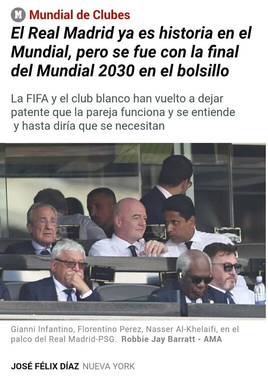 C'est un journaliste madrilène qui dit que l'entente entre le Real et la FIFA devrait sûrement assurer la finale au Bernabeu. Il n'y a rien d'officiel et même pas proche de l'être. C'est un article d'opinion et non pas d'information.