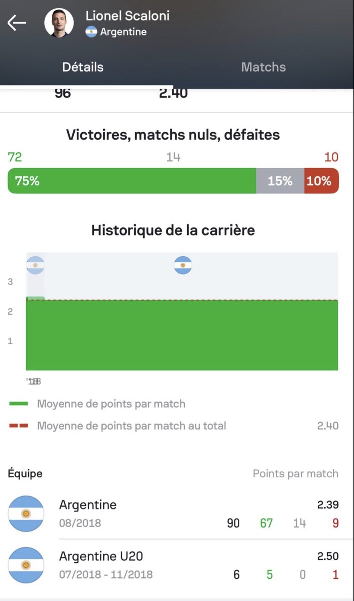 Scaloni n'a coaché que 6 matchs les U20 avant de prendre l'équipe A il était juste coach adjoint avant