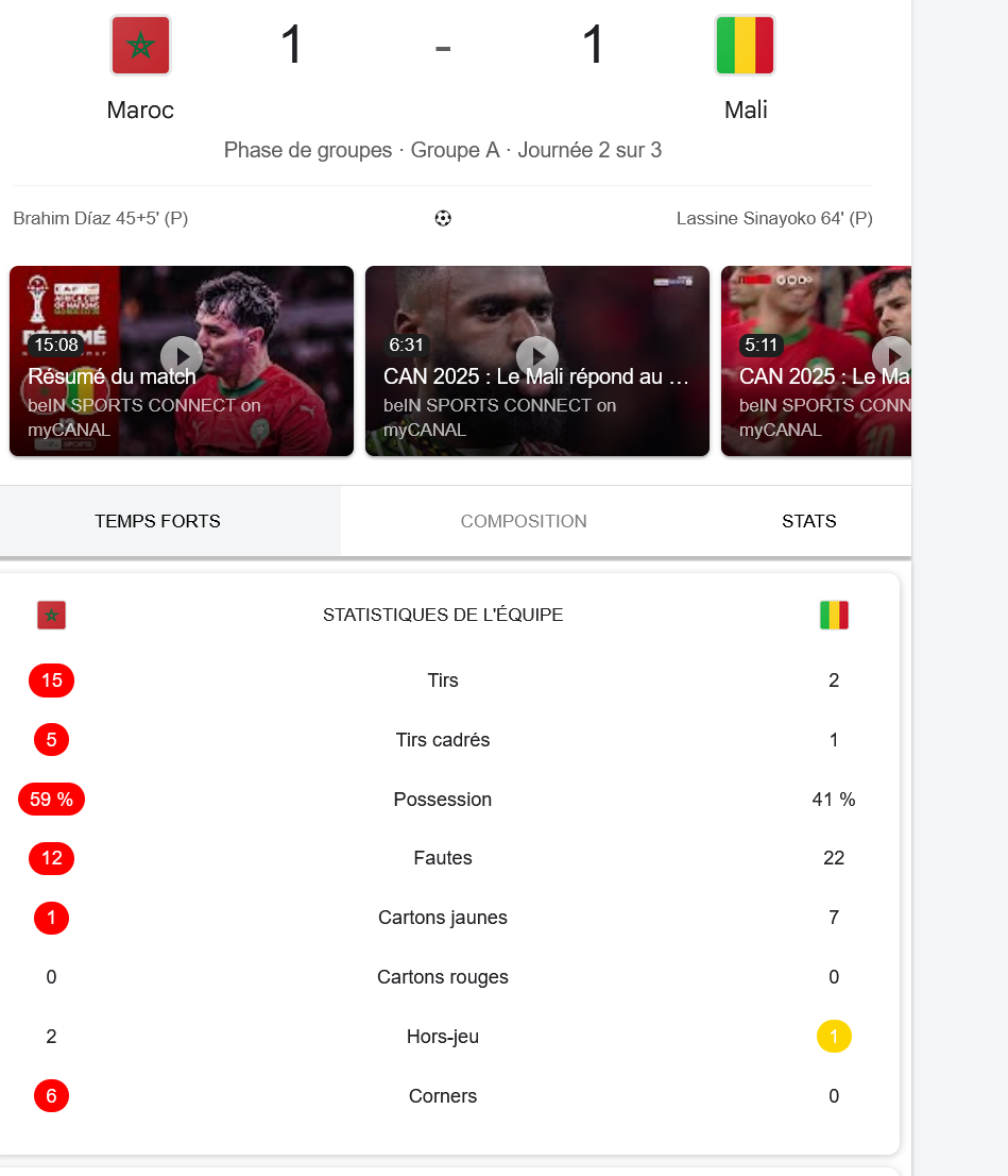- [CAN 2025] Maroc 1 - 1 Mali