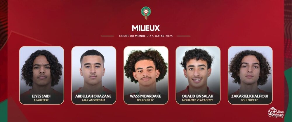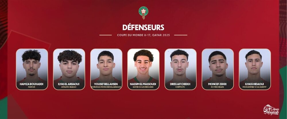La sélection marocaine des moins de 17 ans va participer à la prochaine édition de la Coupe du Monde U17 au Qatar. Forte d’un esprit de groupe affirmé, elle entend aller au-delà du simple tour de groupes et inscrire une nouvelle page de son histoire. Calendrier : 03/11/2025 — Maroc vs Japon 06/11/2025 — Maroc vs Portugal 09/11/2025 — Maroc vs Nouvelle‑Calédonie La liste des 21 joueurs sélectionnés :
