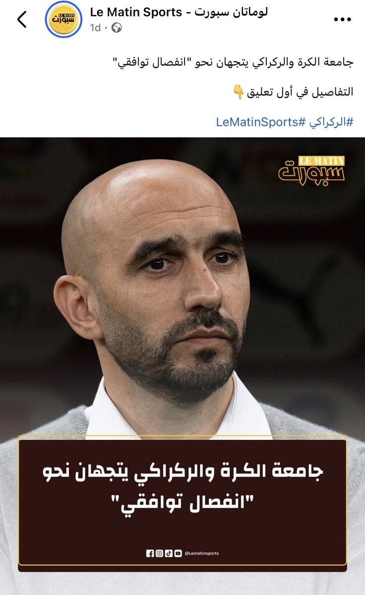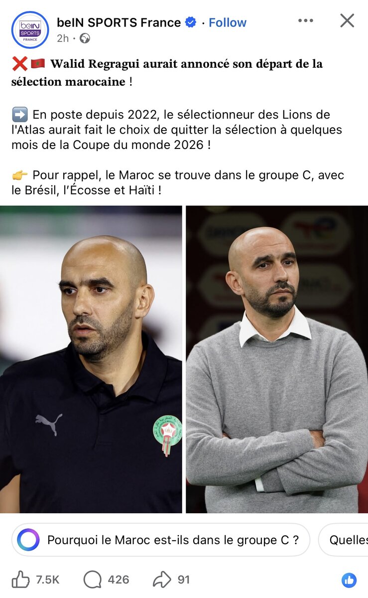 p*tain c’est quoi ce cirque Si la FRMF s’empresse de démentir c’est qu’il y a anguille sous roche et qu’il va sûrement rester d’autant plus que c’est la 2e fois de suite en 2 semaines qu’ils démentissent !!! Du coup s’il partait vraiment et qu’ils doivent l’annoncer d’ici 1 semaine eh ben ils se ridiculiseraient !!!