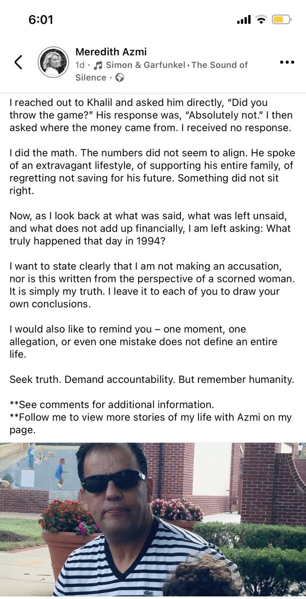 Les amis la femme de Khalil Azmi sur FB est train d’insinuer qu’il a pris un pot de vin en 1994 , ça explique ses bourdes en coupe du monde 1994 😳
