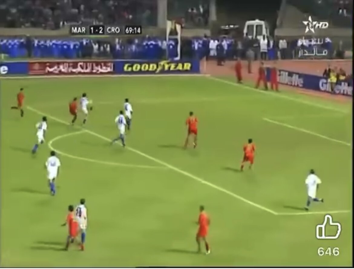 La question c’est est-ce que el Bahja était hors-jeu lors de notre égalisation sur une passe décisive de Hadji contre la Croatie ?
