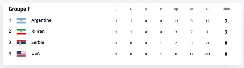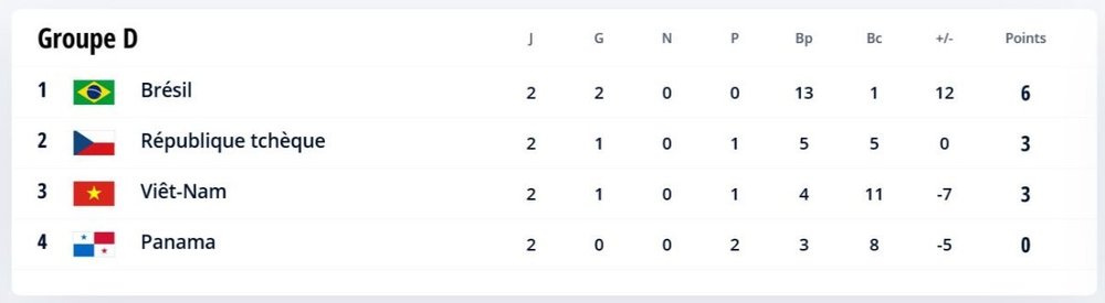 Je viens de vérifier tous les groupes et on est assuré de terminer parmi la meilleur 3ème équipe des 4 pays en cas de faillite mentale et Dinization des shorts face au Portugal lors de la 3ème journée Groupe A ==> Lituanie ou Costa Rica = 3 points max (derrière le Maroc) Groupe B ==> Je ne sais pas ce que vaut l'Ouzbékistan mais je vois bien l'Egypte terminé à la 2ème place de ce groupe et le Guatemela finir 3ème (3 points : derrière le Maroc). Groupe D ==> Le Brésil ne devrait faire qu'une bouchée du Panama et la République Tchèque s'imposera face au Viêt-Nam. Le 3ème de ce groupe aura au max 3 points (derrière Maroc). Groupe E ==> Dans le groupe E, l'Angola ou le Paraguay finira au minimum avec 1 ou 3 points (derrière le Maroc) car s'est largement inférieur au Japon. ==> Dans le groupe F, l'Iran et l'Argentine devrait largement s'imposer et se qualifier dès la 2ème journée donc Serbie terminera avec 3 points et un GA négatif (derrière le Maroc).