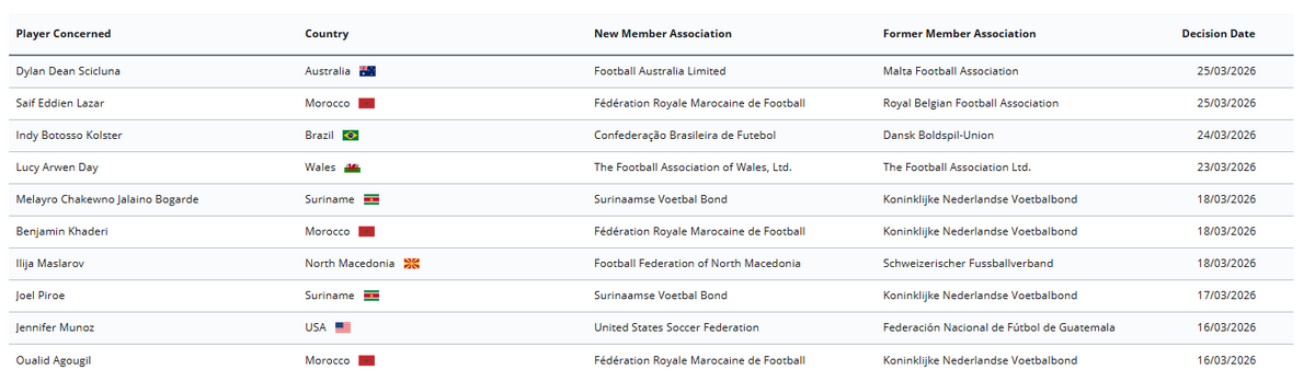 15. Confirmé pour Rayane Bounida. https://knowledge.fifa.com/change-of-association-platform