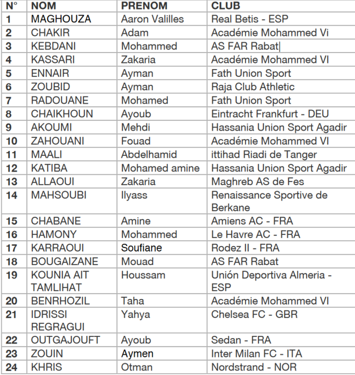 • chlaghmo est le seul que je reconnais dans l'equipe qui a fait la cdm je pense qu'ils sont passes U19/20 maintenant
