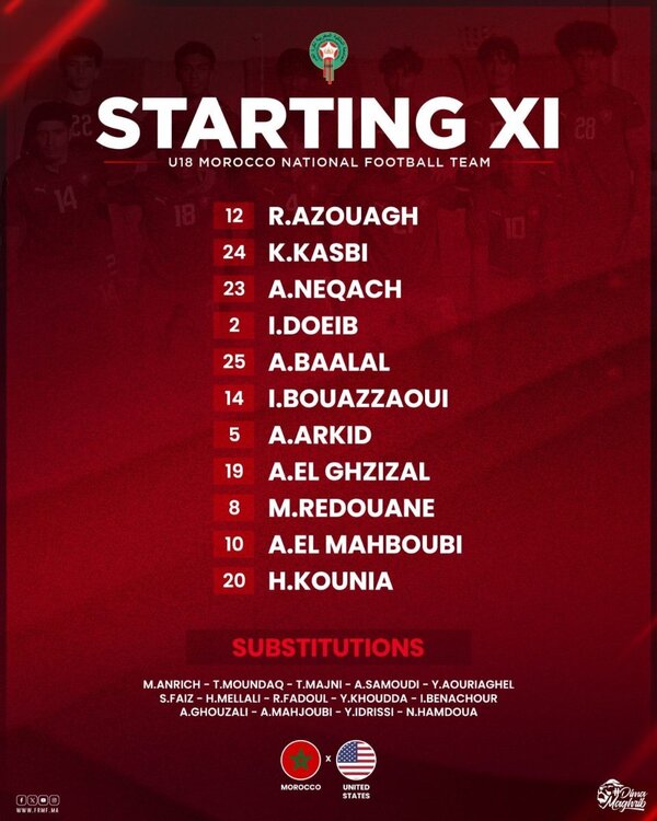 Les buts de la sélection nationale sont inscrits par Zakaria Allaoui (6ème) et Yahya Idrissi (34ème).