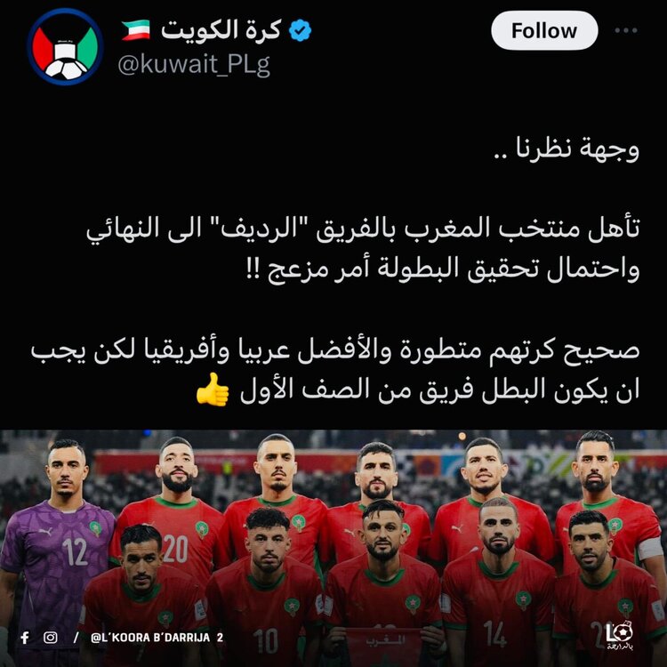 Posté(e) il y a 3 heures3 h à l’instant, Pastore a dit :Lekjaa a vraiment m*rdé en annonçant Ouahbi avant la fin de la CAN. Si Walid échoue à remporter la compétition, on va se retrouver un blondinet comme dirait @essam car Sektioui part après la finale…Sektioui continuera avec l'équipe locale jusqu'à la succession de Regraguison rêve est de prendre l'A il va pas rater cette occasion en signant à Al Rayane ou AL Ain après la Coupe Arabe