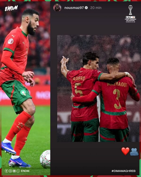 Posté(e) il y a 1 heure1 h il y a 7 minutes, essam a dit :ça tourne vraiment à la catastrophe ce début de CAN niveau blessureHakimi Igamane Saiss Aguerd Masina ... (probablement Yamiq et Maz qui vont pas tarder) mais c'est quoi ce fichu b*rdel ?c'est entierement la faute de ton Gourou