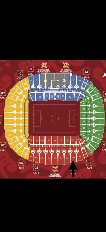 Posté(e) il y a 1 heure1 h il y a 11 minutes, Cambo a dit :Block 328 (alors que c'est un billet CAT 1) A mon avis, au mieux je peux atteindre un block en dessous mais ça va être chaud d'atteindre le virage en bas, surtout qu'ils seront sûrement plus stricts pour la finale pour les contrôles d'accès aux blocsC'est le côté où il y a 3 étages séparés ? C'est pas le coté où il y a seulement 2 étages yak ?Je connais pas ce coté mais je crois que les ultras seront ensemble de l'autre coté comme face au Nigeria.