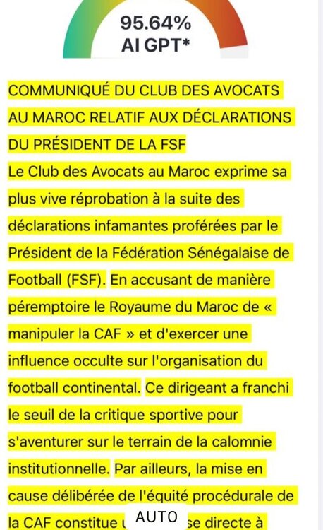 Posté(e) il y a 4 heures4 h il y a 26 minutes, Ouarzazati a dit :On ne l'a pas vu écrit noir sur blanc. Je ne dis pas que c'est faux je ne dis pas que c'est vrai. Pour l'instant je me base que sur le factuel.L'arbitre de senegal vs AFS a lui été suspendu à vie. Ça c'est factuel.Ce que je t'explique c'est que c'est que ce sera étudié puis interprété par le TAS et que c'est pas rien. Je ne compare pas avec AFS SEN